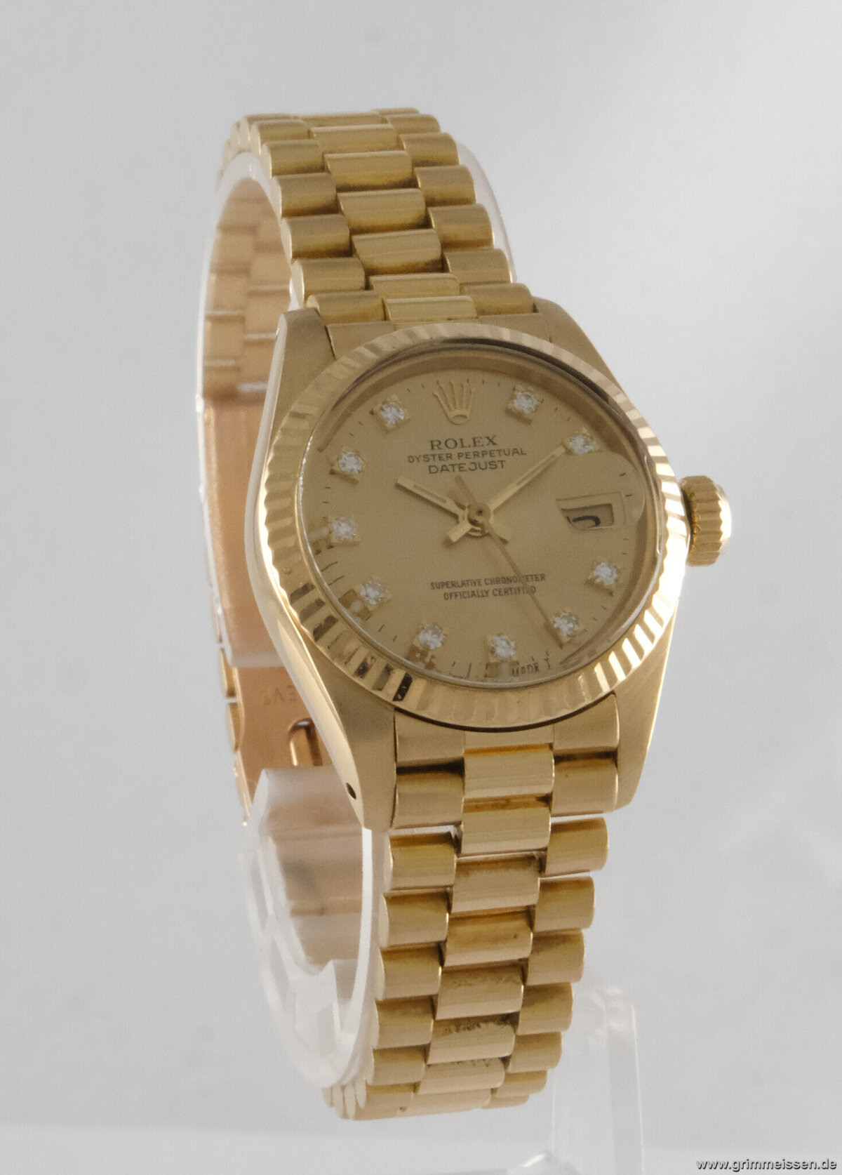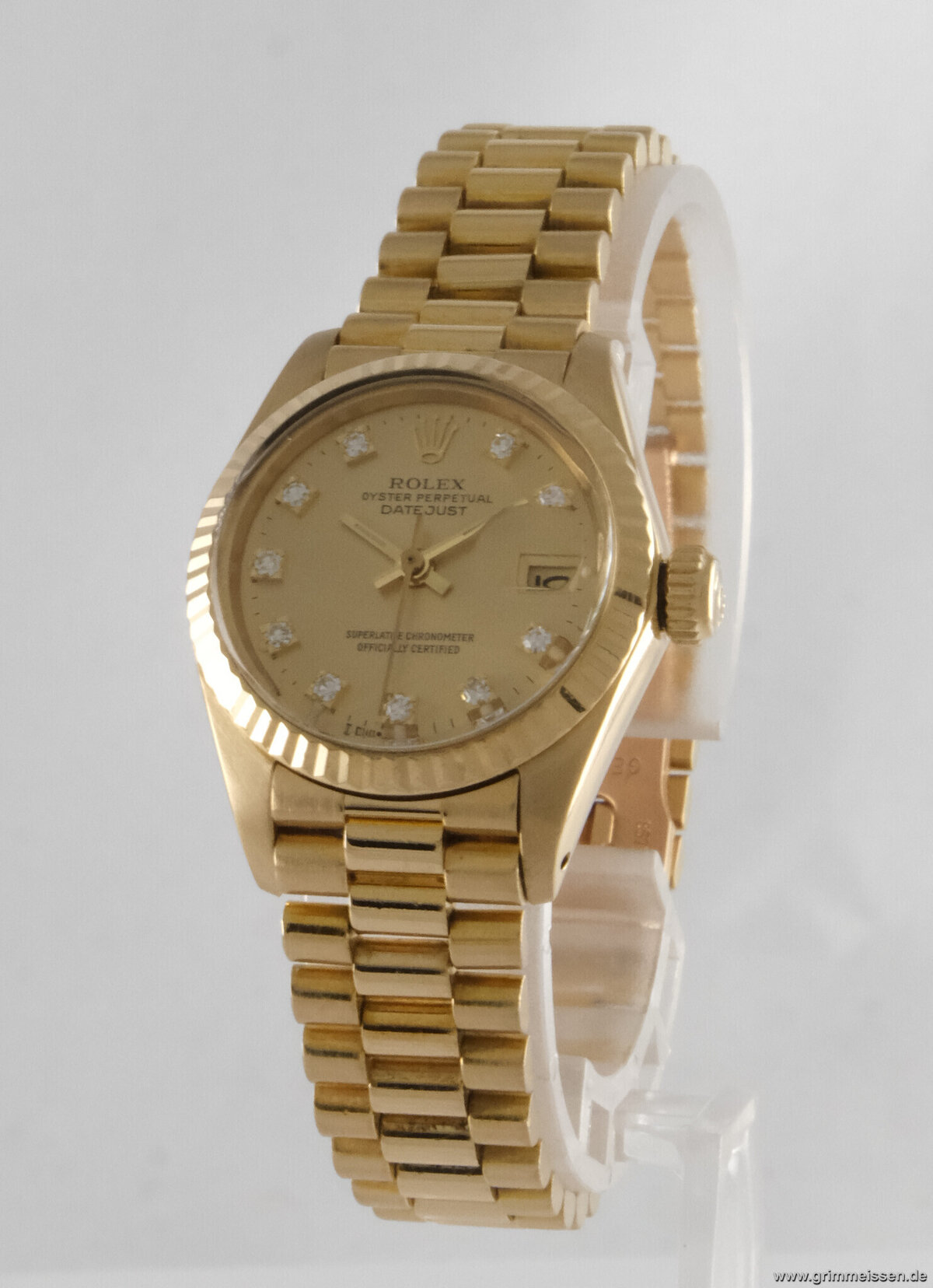 | Sonstiges: | Zentralsekunde, Edelsteinbesatz, Chronometer, Verschraubte Krone, Originalzustand/Originalteile. |