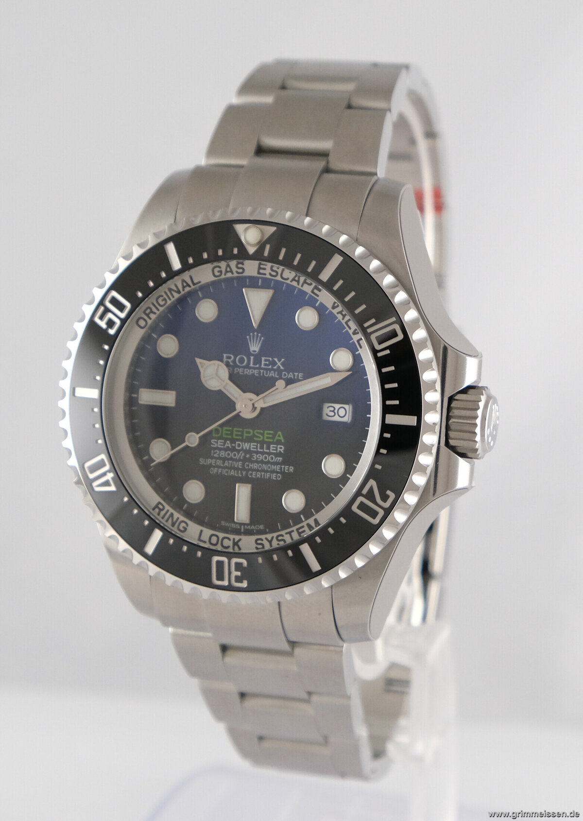 | Sonstiges: | Zentralsekunde, Leuchtziffern, Leuchtzeiger, Chronometer, Drehbare Lünette, Verschraubte Krone, Heliumventil. |