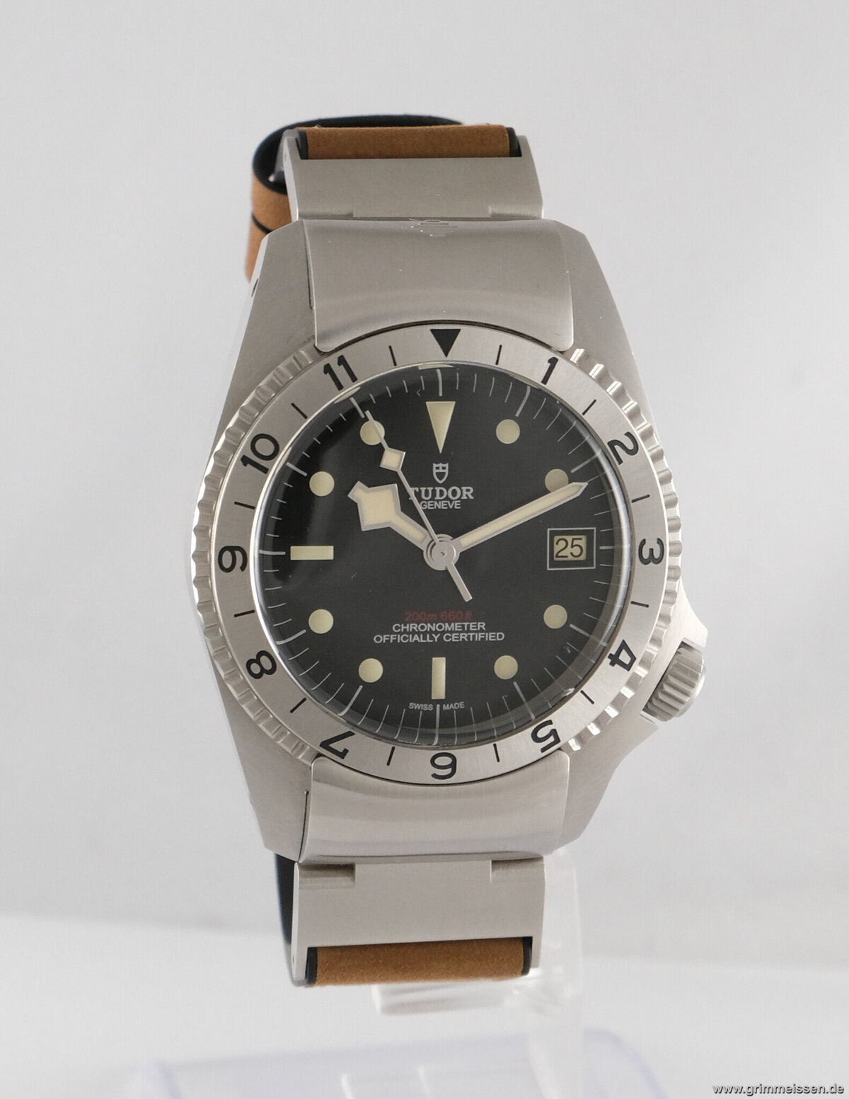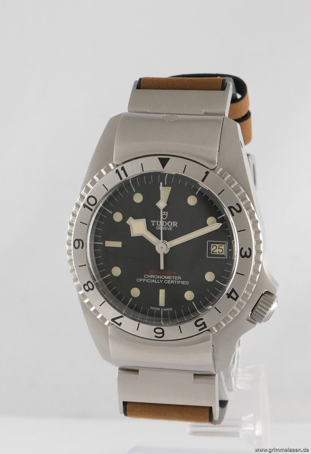 | Sonstiges: | Zentralsekunde, Leuchtziffern, Leuchtzeiger, Drehbare Lünette, Verschraubte Krone. |