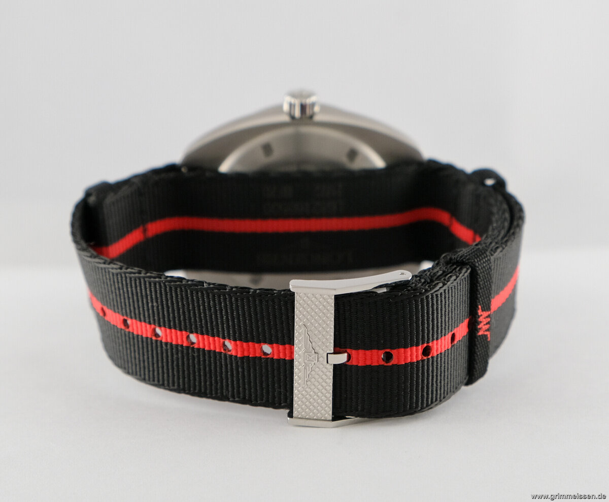Uhr kommt mit Stahl und Textilband.