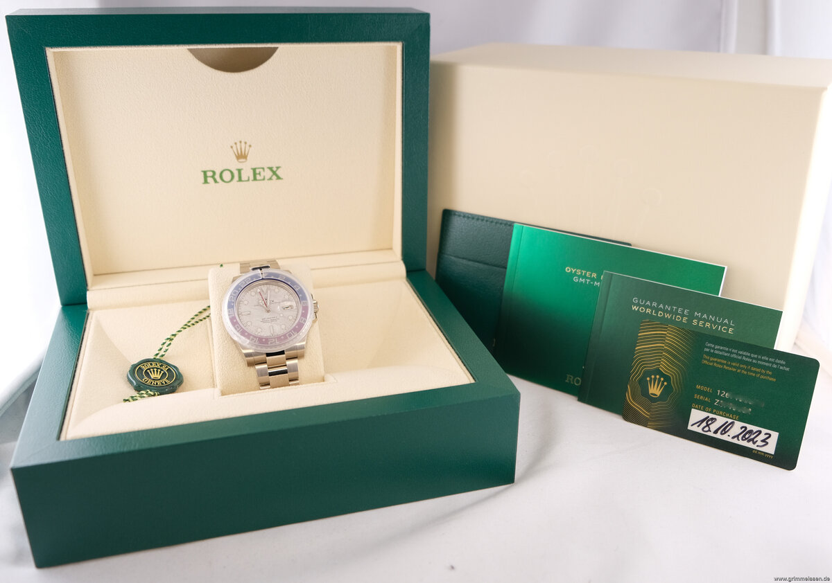 Perfekte Uhr mit allen Unterlagen. Zifferblatt Meteorit